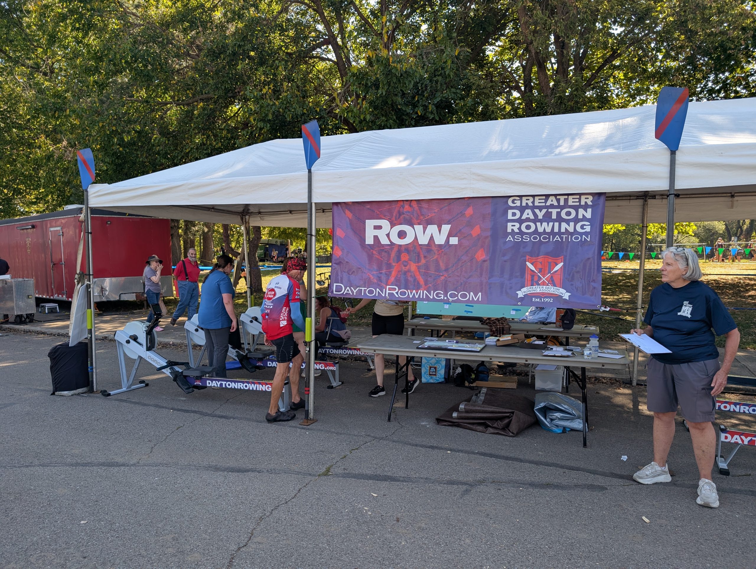 Our volunteers enjoyed this opportunity to serve as ambassadors for the sport of rowing in the Dayton community. Visitors were invited to try the rowing machines at our GDRA tent, as always. Ben Boehm, who organized the volunteers this year, reported that 528 people completed our 500m or 1-minute rowing challenge, which was an increase of almost 50% more than last year. It was a busy and fun weekend.